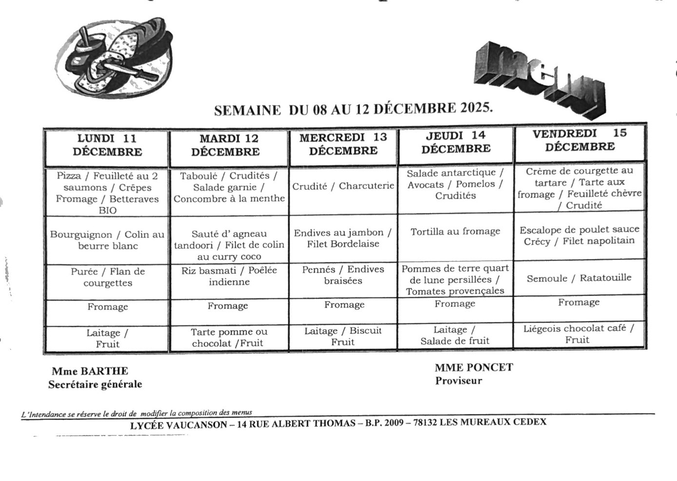 Menus de la Restauration Scolaire